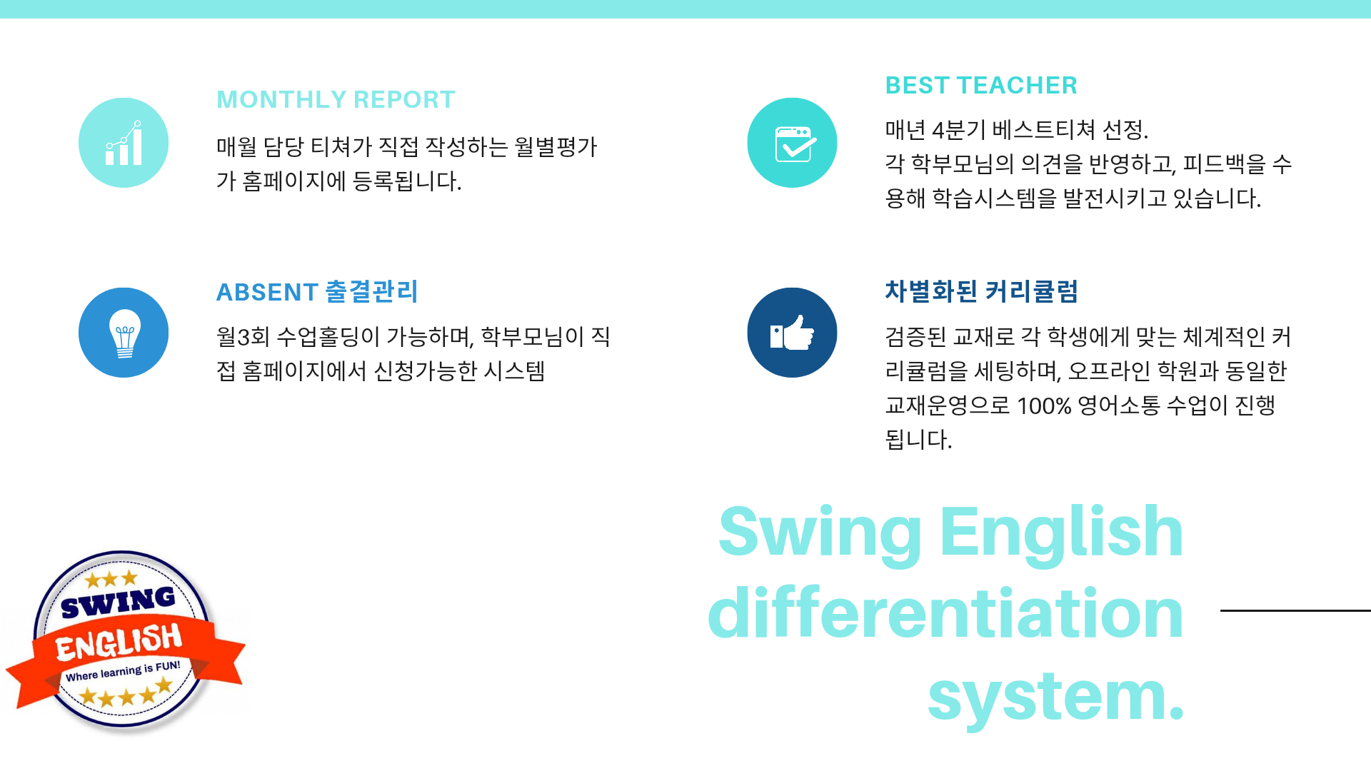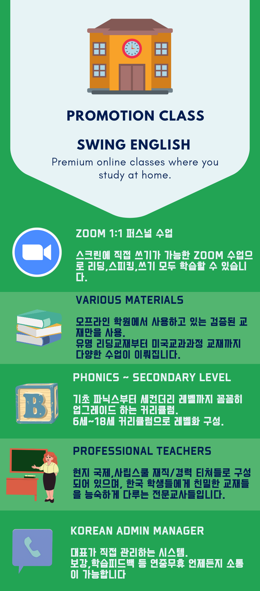 말하기, 듣기, 읽기, 쓰기의 향상을 직접 경험하실 수 있습니다.